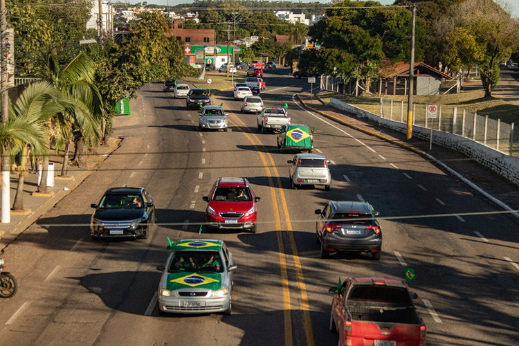 Com bandeiras do Brasil penduradas nos veículos e diversos cartazes pedindo a “Intervenção Militar”, e outros com frases como “autorizam as medidas de Bolsonaro”, eles seguiram por diversas ruas centrais e do Bairro Arroio Grande.