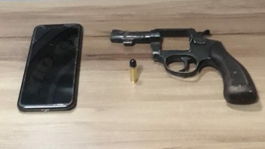 Ele foi encaminhado à delegacia, sendo apreendido um revólver calibre 38, uma munição e um celular.