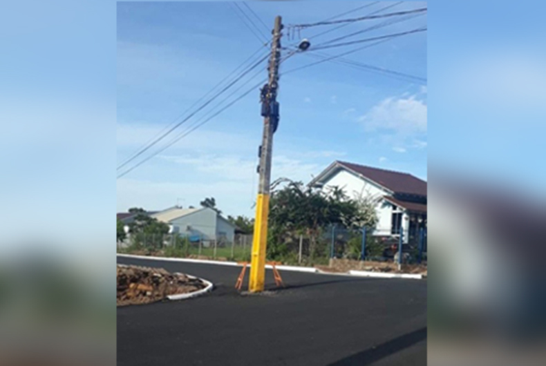 O secretário de Planejamento, Gustavo Von Helden, informou que a Prefeitura encaminhou requerimento à empresa RGE Distribuidora de Energia, solicitando a remoção do poste, antes ainda do asfaltamento. No entanto, com um prazo de até 120 dias para executar o trabalho, as obras de pavimentação chegaram até o trecho antes da mudança.
