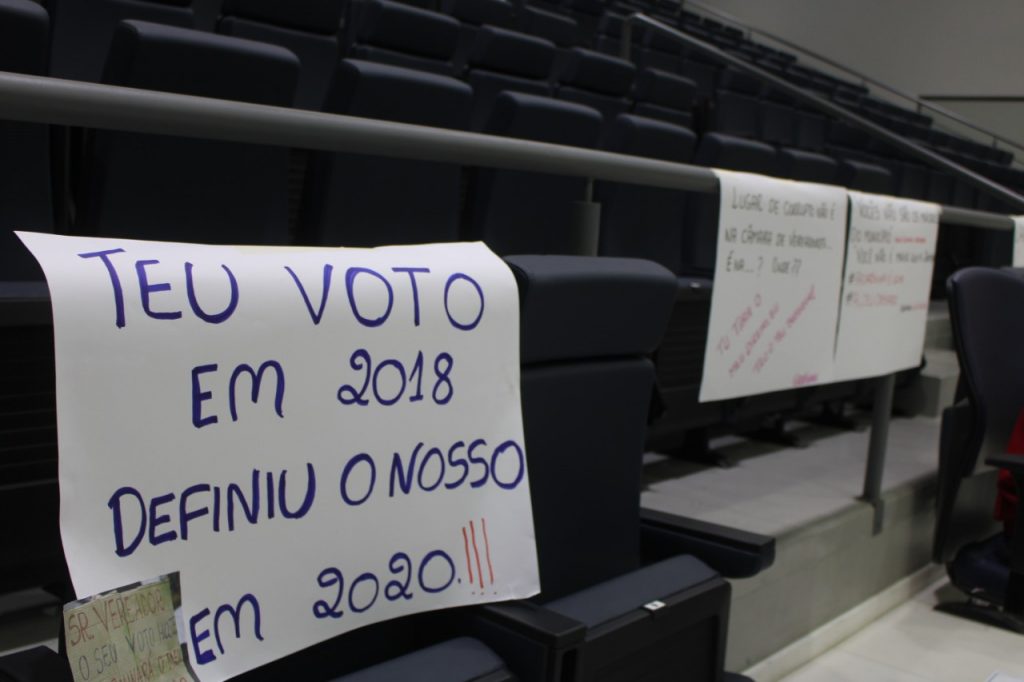Desbessell também autorizou que cartazes com frases de protesto contra os parlamentares que votaram a favor da Lei dos Vales fossem fixados nas galerias.