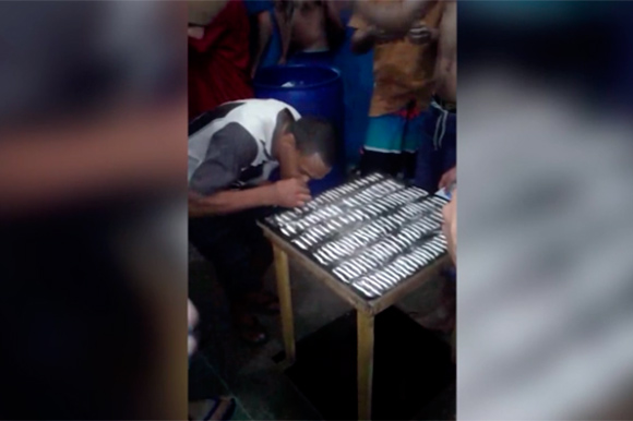 O vídeo mostra em torno de 120 carreiras da droga distribuídas em fileiras. Doze presos consomem o pó, enquanto que os demais incentivam e assistem. Além da cocaína, as imagens flagram ainda pelo menos três celulares com os presidiários. Um quarto aparelho teria sido usado para gravar o vídeo.