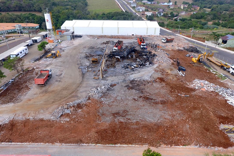 Equipes de empresas contratadas trabalham na demolição, limpeza e retirada dos entulhos do incêndio que atingiu a Calçados Beira Rio, unidade de Mato Leitão, para a reconstrução dos prédios. O projeto prevê a instalação de novos pavilhões no prazo estimado de oito meses a um ano. Cerca de 90% da atual estrutura foi destruída num grande sinistro na madrugada do dia 17 de março.