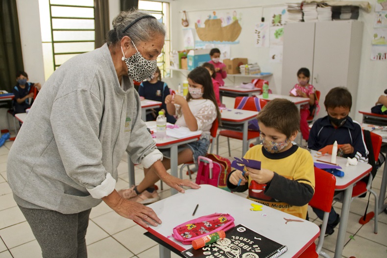 Além disso, durante a pandemia, com a obrigação de ser inserida no meio digital para poder acompanhar as aulas, Eva se esforçou para aprender a nova forma de lecionar. “No início, ela vinha todos os dias aqui para aprender e hoje já sabe. Ela não desanima enquanto não dá certo”, relata a coordenadora educacional da Emef, Ana Paula Monteiro Kuhn, 44 anos. “Está sempre disposta, bem-humorada, criativa e motivada.”