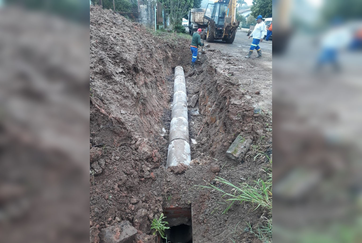 O conserto na tubulação foi necessário porque parte do encanamento quebrou, ocasionando a entrada de terra e sujeira, além da consequente obstrução da canalização. A equipe da Prefeitura colocou dez novos canos de 40 centímetros de diâmetro. Também foram necessárias duas cargas de terra para cobrir a instalação novamente.