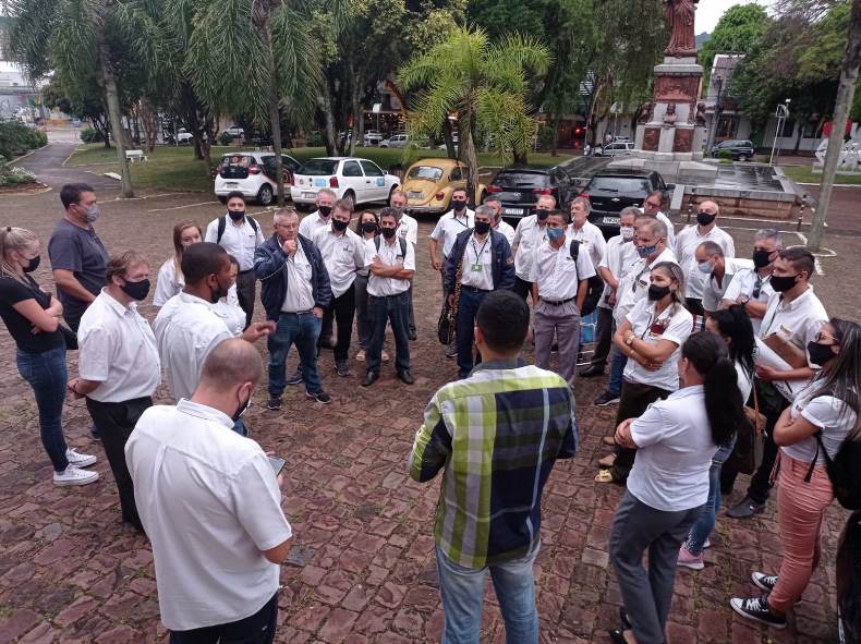 Os motoristas e cobradores do Consórcio TCS participaram de uma reunião no fim da tarde desta terça-feira, 16, no Palacinho. O encontro reuniu representantes da categoria, a prefeita Helena Hermany, o promotor público Érico Barin e gestores das empresas responsáveis pelo transporte coletivo de Santa Cruz do Sul. A pauta foi a proposta de reajuste apresentada pelo consórcio aos trabalhadores, que estão em greve desde o início desta manhã.