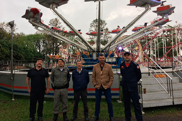 Com a passagem de temporais e chuva forte em Santa Cruz do Sul, o departamento de Segurança da 33ª Oktoberfest e Feirasul realizou uma vistoria, nesta sexta-feira, 13, em todo o complexo da Festa da Alegria. De acordo com o capitão Rafael Menezes, comandante da 1ª e da 2ª Companhias da Brigada Militar, todas as instalações foram verificadas nesta tarde, entre elas, a arena de shows, o lonão e o parque de diversões.