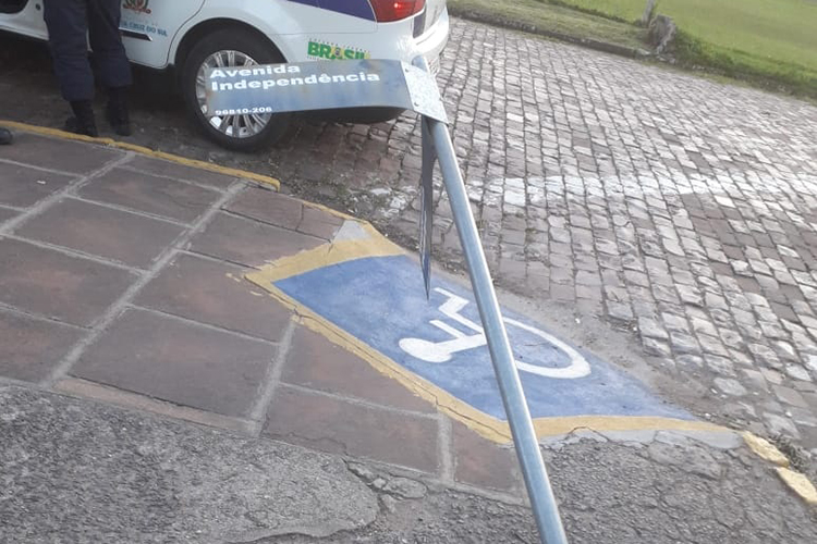 Um homem de 23 anos danificou uma placa de sinalização, na esquina da Avenida Independência com a Travessa Sergipe, no Centro de Santa Cruz do Sul, e acabou encaminhado à Delegacia de Polícia por agentes da Guarda Municipal, no fim da tarde desta quarta-feira, 24.