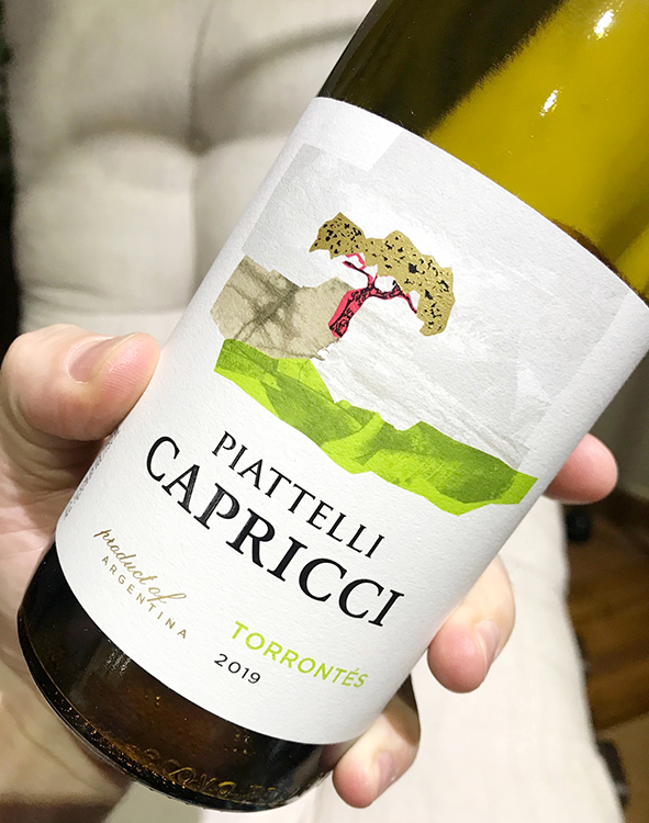 Estima-se que tenha surgido entre o final do século 18 e o início do século 19, tendo sido batizada com esse nome em meados do século 19. A palavra “Torrontés” vem de enxurrada, atribuído a sua “chuva de surpreendentes aromas”. O Piattelli Capricci Torrontés 2019 vem lá de Cafayate e expressa o que essa uva fornece a quem bebe seu vinho: coloração palha claro com reflexos esverdeados, muito límpida, tradicionais aromas florais (flor de laranjeira, gerânio e jasmim) e também frutas brancas frescas (carambola, pêssego, maçã, abacaxi). Boca expressiva. É fresco, cítrico e vibrante, repetindo os aromas, com ótima acidez e final.