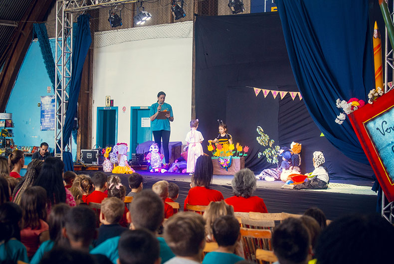 Participando pela segunda vez, a Emei Gonçalves Dias – primeira escola rural de Vera Cruz – subiu ao palco. Alunos de 3 a 4 anos apresentaram uma adaptação da história Camilão, o Comilão, da autora Ana Maria Machado. A diretora da instituição, Luciana Pereira Rodrigues, explica que a escola foi inaugurada no ano passado, mas fez questão de marcar presença na Feira do Livro. “Vemos o quanto é importante para as crianças estarem em contato com a cultura, essa é a nossa motivação”, acrescenta.