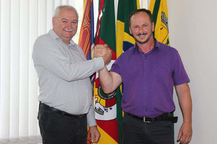 Na tarde dessa segunda-feira, 6, a sala de reuniões da Prefeitura Municipal sediou o ato de transmissão do cargo de chefe do Executivo do atual prefeito, Maninho Trevisan, para o vice, Armando Mayerhofer. Trevisan entra em férias durante 30 dias e, nesse período, o gabinete passa a ser ocupado por Mayerhofer. Também neste mês, o secretário Idelfonso Barbosa assume interinamente a pasta da Secretaria de Administração, visto que o secretário Diego se encontra em férias e Felipe Secretti assume a pasta de Finanças.