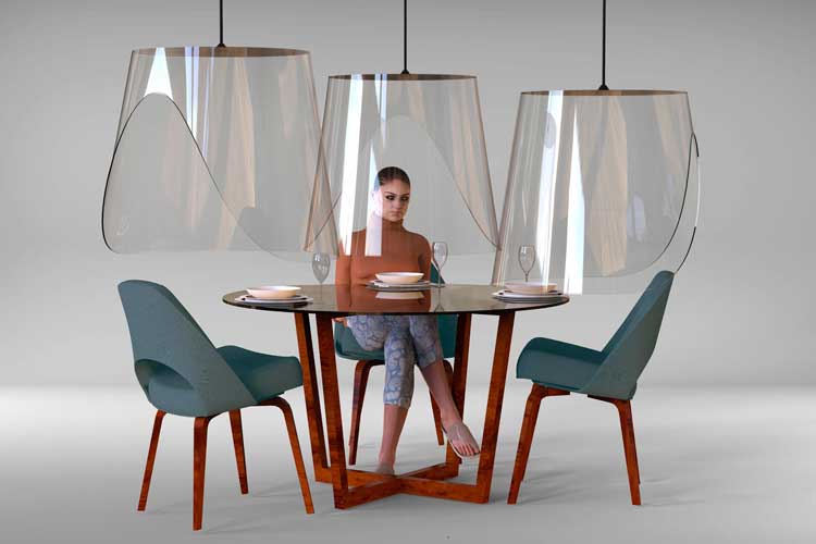 Batizada de Plex’Eat, a proposta leva a assinatura do francês Christophe Gernigon, e prevê cápsulas de plástico individuais que, penduradas no teto, permitem que as pessoas dividam a mesa de forma segura. Segundo o fabricante, modelos maiores, capazes de acomodar um casal durante um jantar romântico, já estão a caminho.