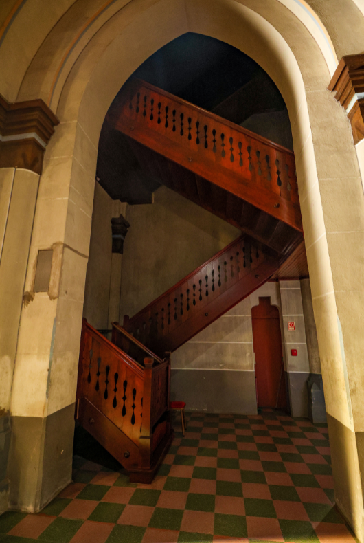 - Restauração e pintura da escada de madeira de acesso ao 2º andar do coro.