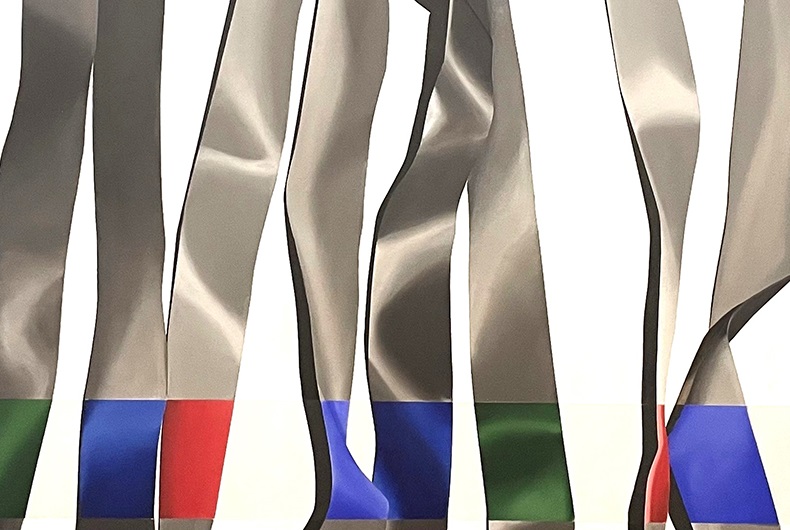 As obras de Maria do Horto Kuhn buscam evidenciar para o público que os limites e as conexões coexistem em delicado equilíbrio. Ela emprega elementos como fitas, fendas e emaranhados para construir uma poética que explora os laços (físicos, afetivos e simbólicos) que definem a experiência humana. Para Letícia Lau, “Entrelaços” aborda tudo aquilo que conecta ao outro e a nós mesmos, revelando as tensões e fluxos que constroem a vida. “A proposta é convidar o espectador a habitar as descontinuidades, refletindo sobre as fendas como espaços de transformação e as fitas como símbolos de fluidez e aceitação”, comenta.