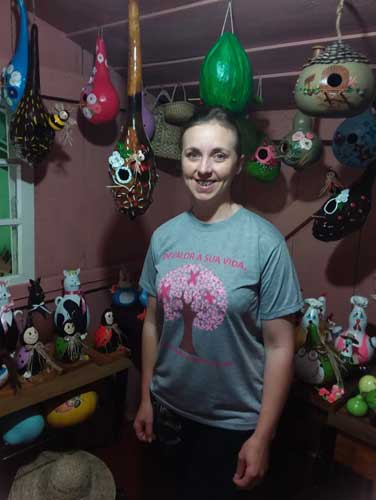 Ao longo dos anos, com o suporte e ajuda do esposo Alan Voese, Cleusa tem participado de feiras nos municípios de Herveiras e Vale do Sol, e esteve na Expoagro Afubra de 2017 e 2018. “Tenho sempre encomendas, na maioria os personalizados, com alguma característica de quem receberá.” Ela ressalta que as vendas são de suma importância, “pois é uma renda extra que entra frequentemente, auxiliando muito na economia familiar”. Na propriedade da família, em Linha Plums, o casal mora com os filhos Mathias e Amália.