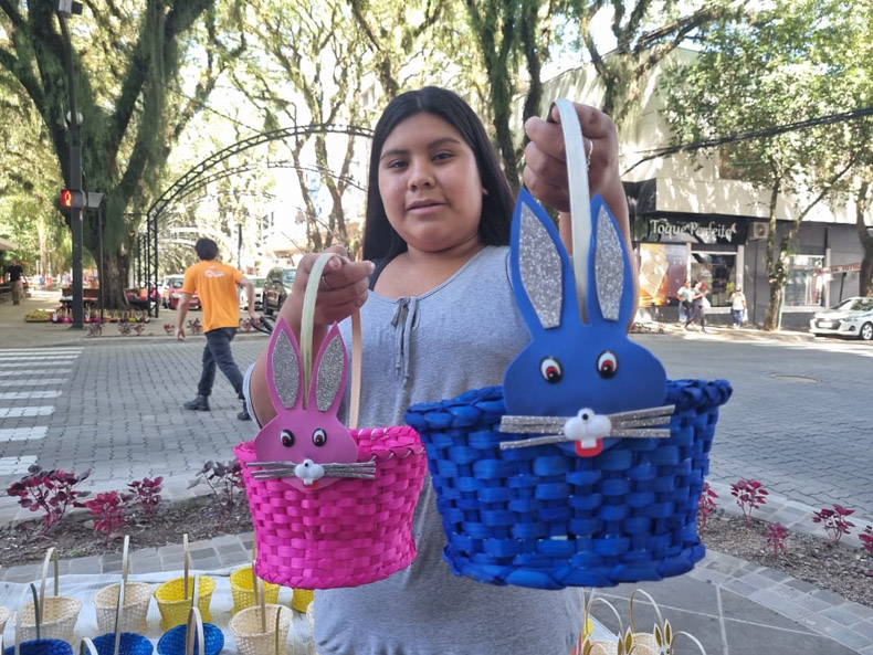 A aproximação da Páscoa transforma as ruas próximas à Praça Getúlio Vargas, no centro de Santa Cruz do Sul, em pontos tradicionais de venda de artesanato indígena. Vindos da Terra Indígena Inhacorá, localizada no município de São Valério do Sul, cerca de 75 indígenas do povo Caingangue, oriundos de duas comunidades, estão na cidade para vender cestinhas, cestões e macela – prática que une tradição cultural e geração de renda.