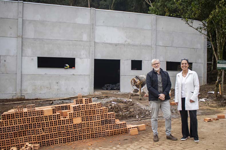 Lula Werner e Anita Ribas Moraes e o prédio em construção da Casa Espiritualista Aruanda Jesus de Nazaré, que está 70% concluído