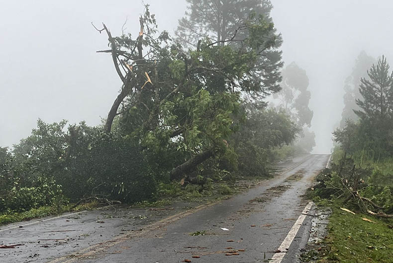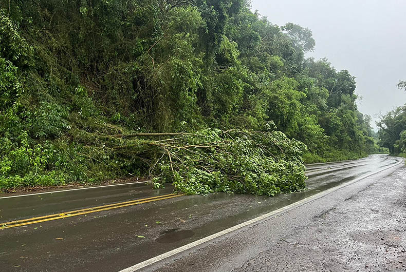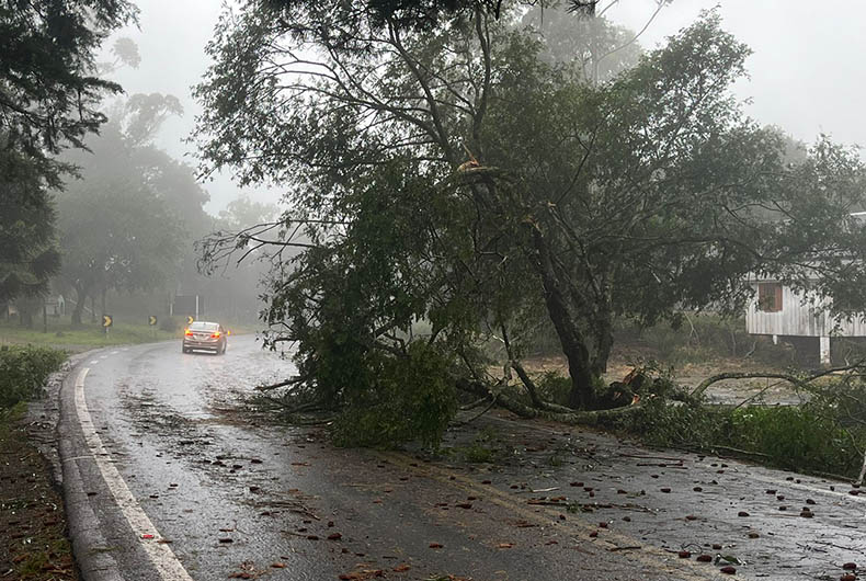 Motoristas que trafegam pela ERS-400, entre Candelária e Sobradinho, precisam ter atenção redobrada nesta quarta-feira, 17. Árvores e galhos caídos na pista afetam o trânsito em diversos pontos da rodovia, como nos casos dos trechos conhecidos como Curva dos Knak e Curva das Cobras. O problema foi ocasionado pelo temporal da noite dessa terça-feira, 16. Em função da grande demanda de atendimentos, não há previsão de horário para remoção das árvores.