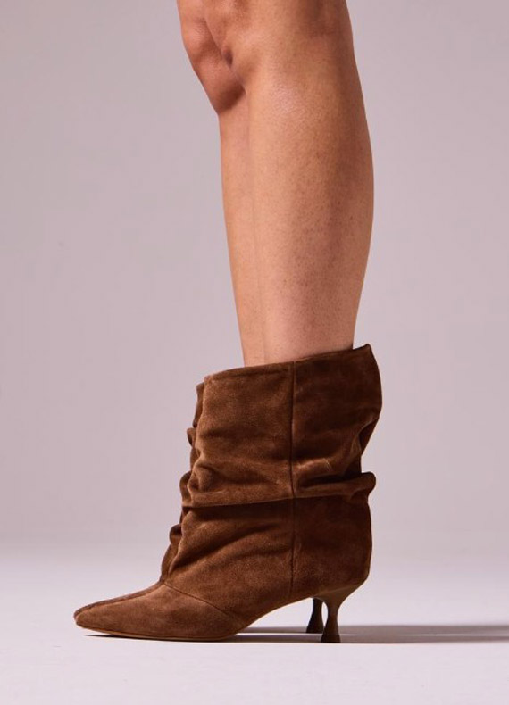 A camurça ressurge com força total, principalmente em acessórios, como bolsas, botas e sapatos. Sintética (suede) ou natural, com textura e toque macios e estética boho-chic, ela traz elegância e aconhego aos looks da estação.