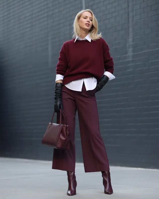O marrom chocolate é a principal aposta. Ele aparece como uma nova base neutra da estação, uma espécie de “novo preto”. Tons de vinho, como burgundy e cereja, além dos terrosos e profundos, se somam à lista. Também são apostas o verde oliva e cores vibrantes, como o azul e o amarelo.