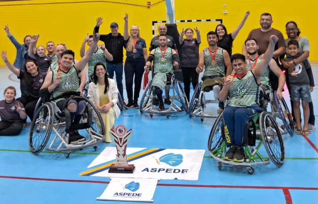 A Associação Santa-Cruzense de Pessoas com Deficiência Física (Aspede) conquistou o título da segunda etapa do Gaúcho de basquete em cadeiras de rodas. A equipe santa-cruzense venceu a Adau (Erechim) por 42 a 31 e o Leme (Novo Hamburgo) por 48 a 8.