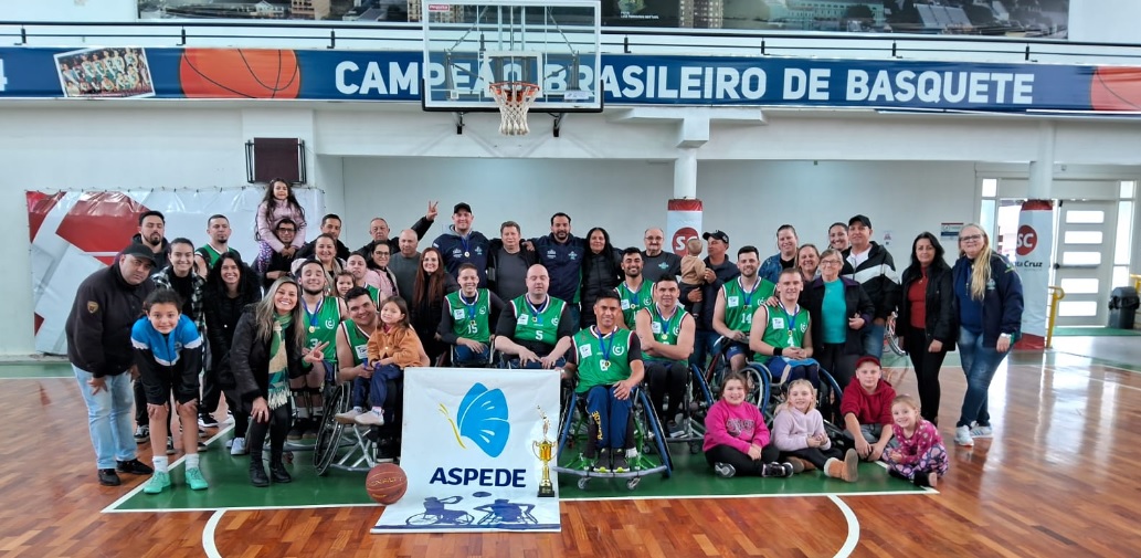 Na disputa do basquete em cadeira de rodas, a equipe santa-cruzense superou a Cidef (47 a 15), Panambi/UFSM (69 a 1), Cidef na semifinal (53 a 17) e Adefisg na final (40 a 24).