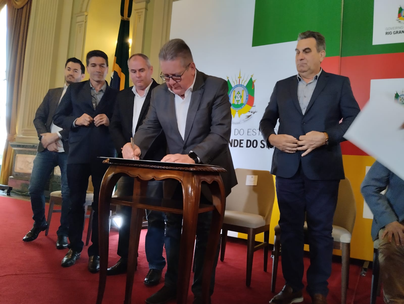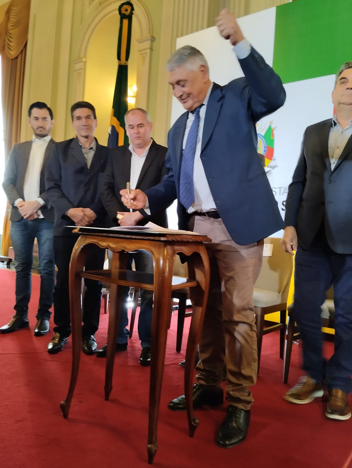 Na tarde desta quinta-feira, 15, um importante passo para um antigo sonho se tornar realidade foi oficializado. O governador do Rio Grande do Sul, Ranolfo Vieira Júnior, assinou a ordem de serviço das obras de pavimentação na ERS-347, que ligará os municípios de Lagoão e Segredo. O ato ocorreu no Palácio Piratini, devido à agenda do governador.