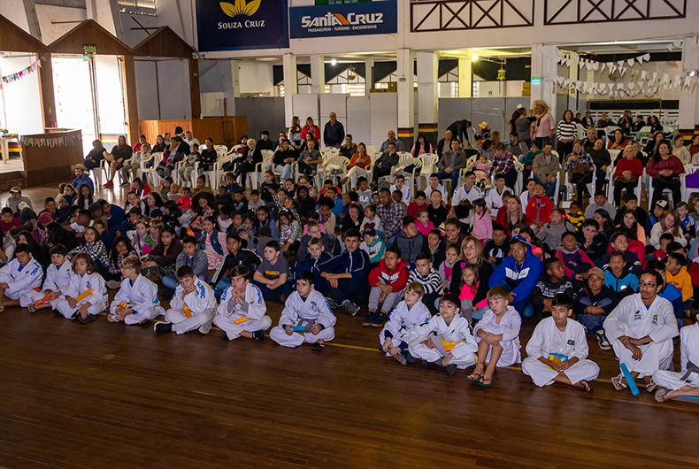 A celebração de aniversário de duas décadas da Associação de Judô Santa Cruz (Ajusc), que ocorreu no último sábado, 28, no Pavilhão Central do Parque da Oktoberfest, reuniu mais de 300 convidados. Para marcar a data, a Ajusc, que tem como parceiros no projeto a Unisc e a Prefeitura, através da Secretaria Municipal de Habitação, Desenvolvimento Social e Esporte, realizou uma série de atividades. Além da troca de faixas das crianças e adolescentes que participam da modalidade, também foi promovida uma festa junina, com bolo e pipoca para a garotada.