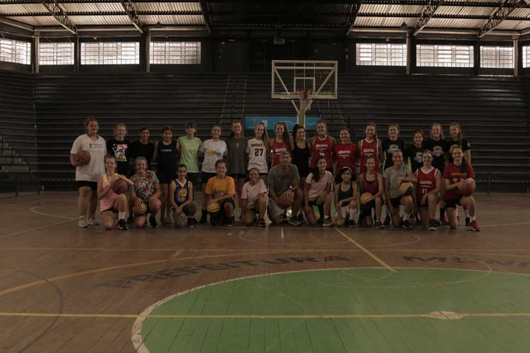 Arremessos de três pontos, tiros livres, giros no garrafão e passadas largas com a bola. Esses são alguns fundamentos exercitados por 40 garotas entre 10 e 17 anos da Associação Meninas do Basquete (AMB) de Santa Cruz do Sul. O grupo treina três vezes por semana, na Sociedade Ginástica e no Ginásio Poliesportivo do Parque da Oktoberfest.