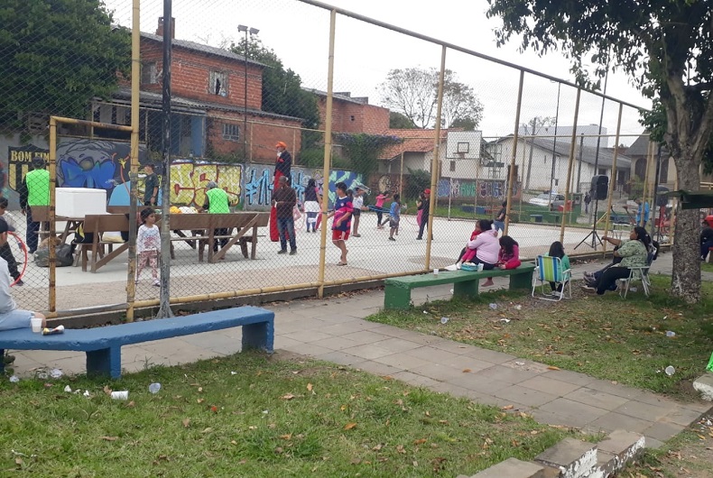 A Associação dos Amigos do Bairro Bonfim, com apoio da prefeitura de Santa Cruz do Sul, realizou na tarde desse sábado, 15, uma atividade alusiva ao Dia da Criança. O evento ocorreu na praça do bairro, que possui uma quadra de esportes aberta e uma pracinha de brinquedos. Durante à tarde, as crianças da comunidade realizaram um lanche partilhado e diversas brincadeiras. O Grupo Sintonia Teatral de Santa Cruz do Sul se fez presente no evento e animou a todos com malabarismos, bambolês e personagem com perna de pau.