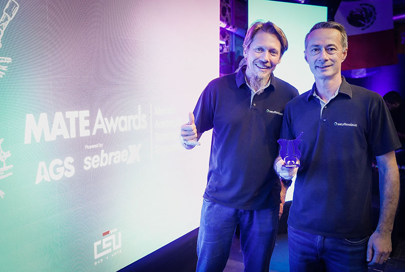 Foram revelados, no dia 28 de fevereiro, os vencedores da primeira edição do Mate Awards (Mercado, Aceleração, Tecnologia e Empreendedorismo), competição estadual organizada pela Associação Gaúcha de Startups (AGS) e pelo SebraeX, marca de inovação do Sebrae/RS. A empresa associada ao Parque Científico Tecnológico Regional da Universidade de Santa Cruz do Sul (TecnoUnisc), a meuResíduo, foi escolhida como Startup do Ano.
