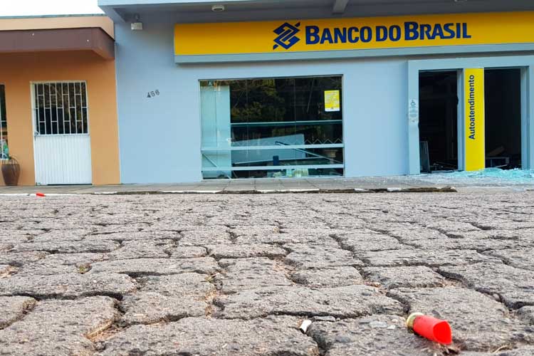 Localizadas uma de frente para a outra, as agências do Banco do Brasil e do Banrisul são invadidas ao mesmo tempo no início da madrugada de sábado. Ceriminosos explodiram os caixas eletrônicos e fugiram levando dinheiro.