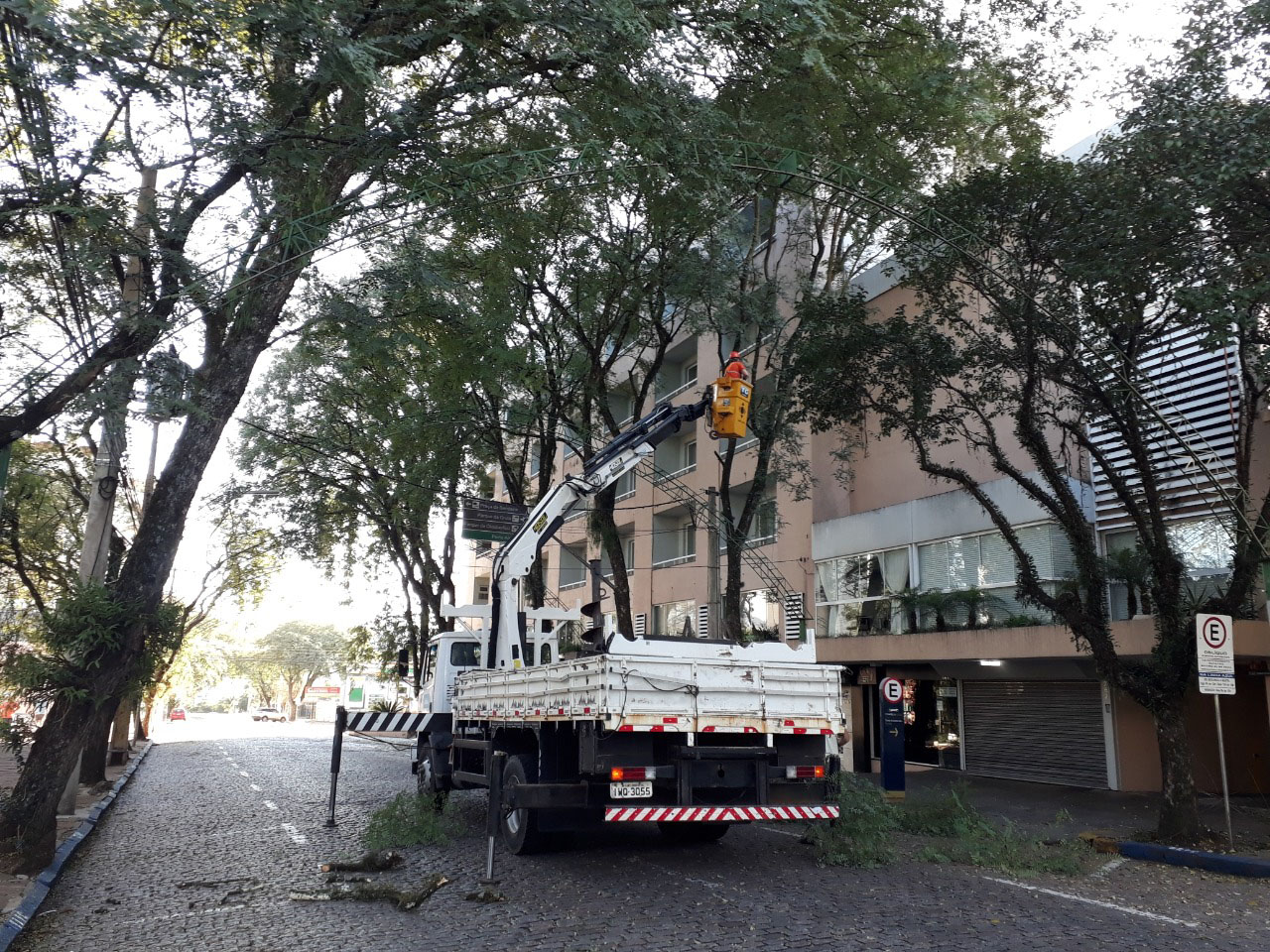 A manhã de domingo, 21, foi dedicada ao trabalho de cuidar das tipuanas do Túnel Verde no Centro de Santa Cruz do Sul. O manejo, que estava parado desde o mês março, por causa do estado de calamidade pública, decretado por conta do novo coronavírus, envolveu podas e supressão de galhos em árvores da Rua Marechal Floriano, no trecho final entre a Júlio de Castilhos e a Borges de Medeiros.