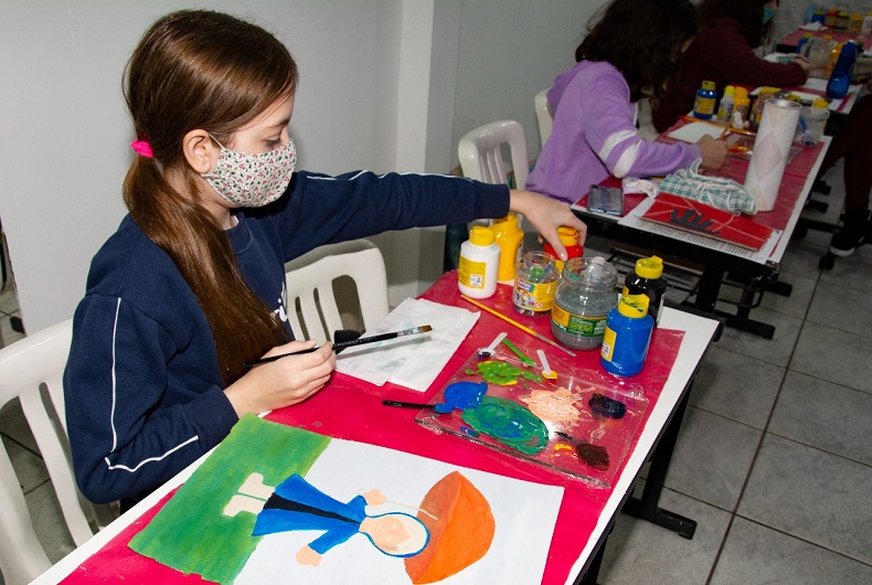 Em um ambiente preparado para esse fim – na sala 6 – e observando todos os protocolos sanitários, a professora Valquiria Ayres ministra as aulas para turmas de até nove alunos. Ao inserir a arte como algo fundamental no cotidiano das pessoas, a iniciativa também visa contribuir para a saúde mental neste difícil momento da pandemia, proporcionando atividades que equilibram os sentimentos e desenvolvem os sentidos. Por enquanto as turmas estão lotadas, mas em breve novas vagas serão abertas.