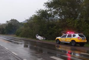 Carro capota à margem da RSC-287