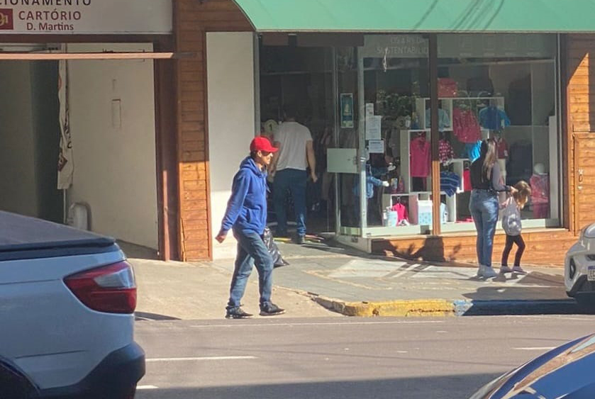 A proprietária o reconheceu, pois já é um homem identificado por cometer muitos furtos em lojas, farmácias e supermercados. Após entregar a sacola, ela acionou um grupo de WhatsApp que existe entre os comerciantes e a Brigada Militar, para avisar que o suspeito estava nas redondezas. Na sequência, o mesmo homem entrou em uma farmácia, na esquina da Júlio de Castilhos com a Rua Tenente Coronel Brito, furtou um pacote de fraldas e colocou dentro da sacola que havia pego com a outra lojista.