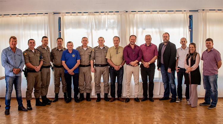 Nessa quinta-feira, 10, ocorreu no município de Sobradinho uma Reunião Almoço entre Brigada Militar, Poder Executivo, Poder Legislativo, Poder Judiciário, Sindicatos e Autoridades locais para debate sobre Segurança Pública local. O encontro ocorreu na Sede da Associação Atlética Banco do Brasil e contou com a presença do Sub Comandante do 23º Batalhão de Polícia Militar Major Fabio Vilnei de Azevedo, do Capitão Douglas Oliveira, dos Tenentes Jerônimo Dalberto, Alvoni Rathke e Marcio Dummer, do Juiz de Direito da Comarca de Sobradinho Dr. Cristiano Meincke, do Prefeito Municipal Sr. Luiz Affonso Trevisan, do Vice Prefeito Municipal Sr. Armando Mayerhofer, Presidente da Câmara de Vereadores Sr. Roberto Carlos Siman, da Vereadora Maxcemira Trevisan, do Presidente do Caciss Sr. Emerson Torrel, do Presidente do Sindilojas Sr. Vianei Pasa, do Presidente do Sindicato dos Trabalhadores Rurais Sr. Delmar Weide e do Presidente do Sindicato Rural Sr. João Carlos Guariente.
