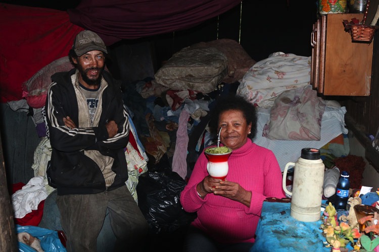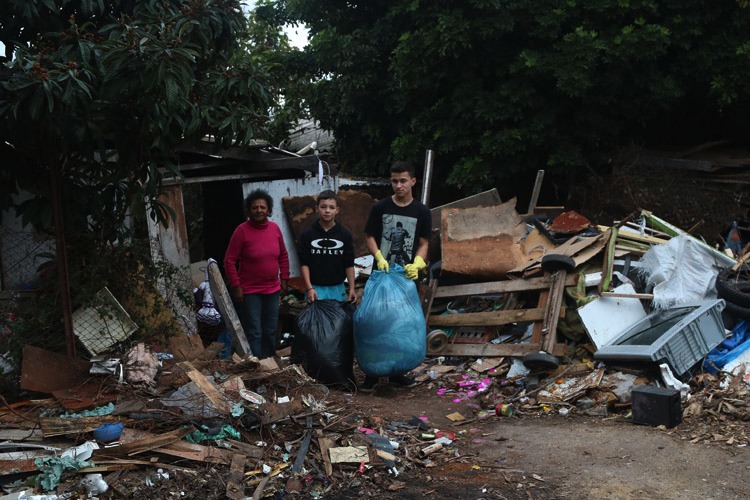 Um dos netos dela, o jovem Douglas Andriel Valério e o amigo dele, Giovani Ricardo May, ajudam na limpeza da casa. Estão retirando o material acumulado, roupas e objetos que são descartados por dona Inês. Nos poucos móveis que estão dentro da pequena casa, há dois sofás – um usado por ela para dormir –, um fogão a lenha velho, armários e uma bancada onde guarda seus tesouros catados em meio ao material que vira reciclável. Bonecos, bichinhos e até mesmo um unicórnio de gesso ajudam a alegrar o dia dela. No chimarrão, na companhia do filho Paulo Gilberto Valério, que recebe o benefício por incapacidade, ela faz seu isolamento da rua. Na casa ainda mora Paulo Altair Valério, que também vive da reciclagem e, assim como a mãe, está sem renda.