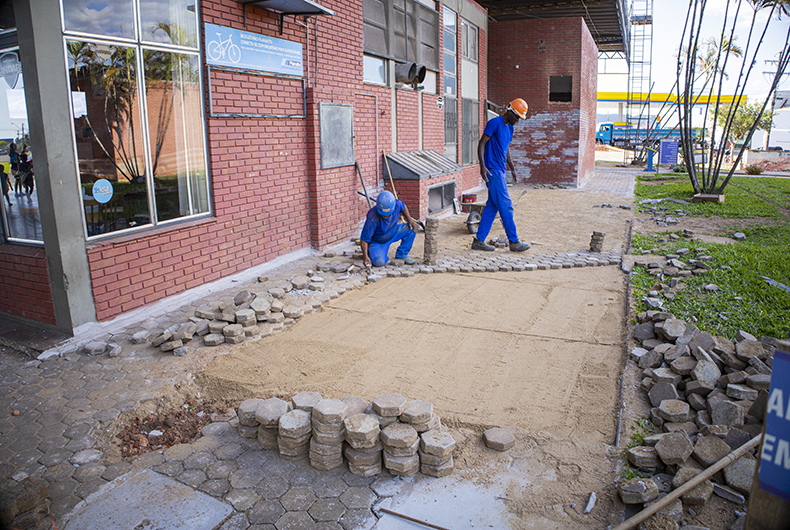 A K&G Construções começou nesta semana a instalação de cabeamento para-raios no telhado. Nos banheiros públicos, após remover e refazer o novo contrapiso, a empresa está finalizando as instalações hidrossanitárias para posterior execução de reboco.