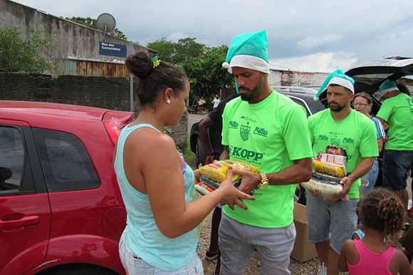 Alimentos e brinquedos foram levados às famílias carentes na manhã deste sábado, 23. Foram 150 brinquedos entre novos e usados, além de 200 quilos de alimentos, provenientes de torcedores e de uma vaquinha feita pelos próprios jogadores.