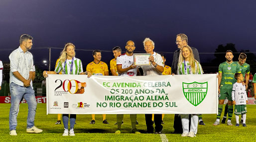 Antes da partida entre Avenida e Brasil de Pelotas, integrantes das festividades alusivas aos 200 anos de imigração alemã estiveram no gramado do Estádio dos Eucaliptos para exibir uma faixa com uma frase sobre o bicentenário. Uma placa foi entregue aos representantes do Brasil.