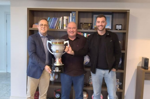 O presidente do Avenida, Jair Eich, e o vice-presidente de futebol, Guilherme Eich, receberam a taça de vice do Gaúcho Série A2 nesta segunda-feira, 15, na sede da Federação Gaúcha de Futebol (FGF), em Porto Alegre, das mãos do presidente da FGF, Luciano Hocsman.