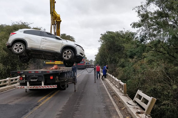 Ainda segundo a PRF, os agentes chegaram ao acidente após o motorista de um ônibus ver um farol ligado embaixo da ponte, que já estava sem as guardas em razão de outro acidente. O Corpo de Bombeiros de Caçapava do Sul fez a remoção das vítimas, pois o local é de difícil acesso.