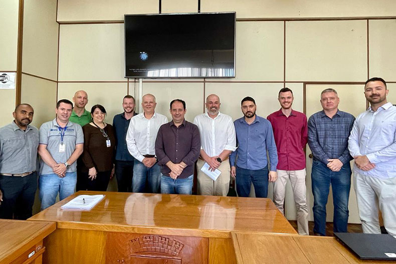 O anúncio aconteceu nesta terça-feira, 25, na sala de reuniões da Prefeitura e contou com a presença dos sócios da unidade, secretários municipais e do empresário César Schultz, da Transportadora Augusta, proprietária do pavilhão de 3 mil metros quadrados alugado junto ao Distrito Industrial para início das atividades.
