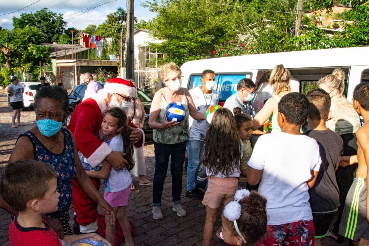 A Prefeitura de Santa Cruz do Sul levou o Papai Noel a mais duas localidades do município no final da tarde da quinta-feira. Crianças dos bairros Senai e Santa Vitória receberam brinquedos arrecadados pela campanha “Neste Natal, doe sorrisos”, promovida pela administração municipal, em conjunto com diversos clubes de serviço, a Câmara de Dirigentes Lojistas (CDL), o clube União Corinthians e o Movimento Tradicionalista Gaúcho (MTG).