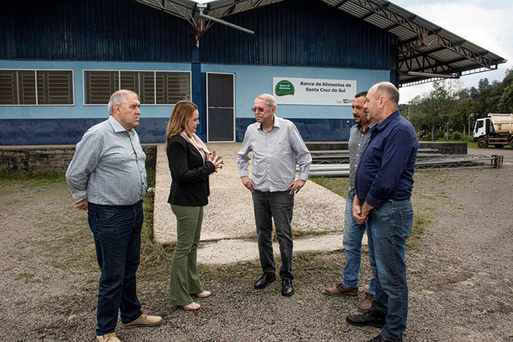 Com o objetivo de arrecadar produtos para pessoas em situação de vulnerabilidade social, o Banco de Alimentos começou a funcionar nesta quinta-feira, 1º, em Santa Cruz do Sul. O prefeito Telmo Kirst conheceu o espaço pessoalmente nesta tarde, acompanhado dos secretários Elo Schneiders, da Agricultura, Delsio Meyer, da Segurança, Defesa Civil e Esporte, e Guiomar Rossini Machado, de Políticas Públicas. O programa foi desenvolvido para administrar as doações de alimentos perecíveis e não perecíveis recebidas em campanhas. Os itens arrecadados serão distribuídos às instituições socioassistenciais e aos serviços municipais que atendem pessoas carentes.