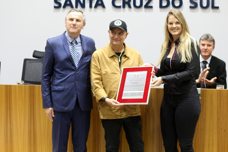 Em nome do grupo, Acilino Alves da Silva, o Pino, agradeceu a homenagem e relatou o carinho que a banda tem com Santa Cruz do Sul, município onde toca há mais de 40 anos. “Temos neste município um grande número de amigos, pessoas que se conheceram ao som das nossas músicas e onde os filhos e netos já estão se divertindo nos bailes que animamos. É um momento muito especial, um reconhecimento que levaremos para sempre”, observou.