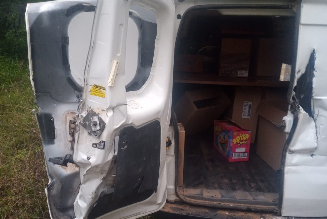 A dupla ameaçou o motorista e o obrigou a levar o veículo até a entrada de uma propriedade. Utilizando uma barra de ferro, os criminosos arrombaram a porta traseira e fugiram levando toda a carga. O caso será investigado pela Polícia Civil.