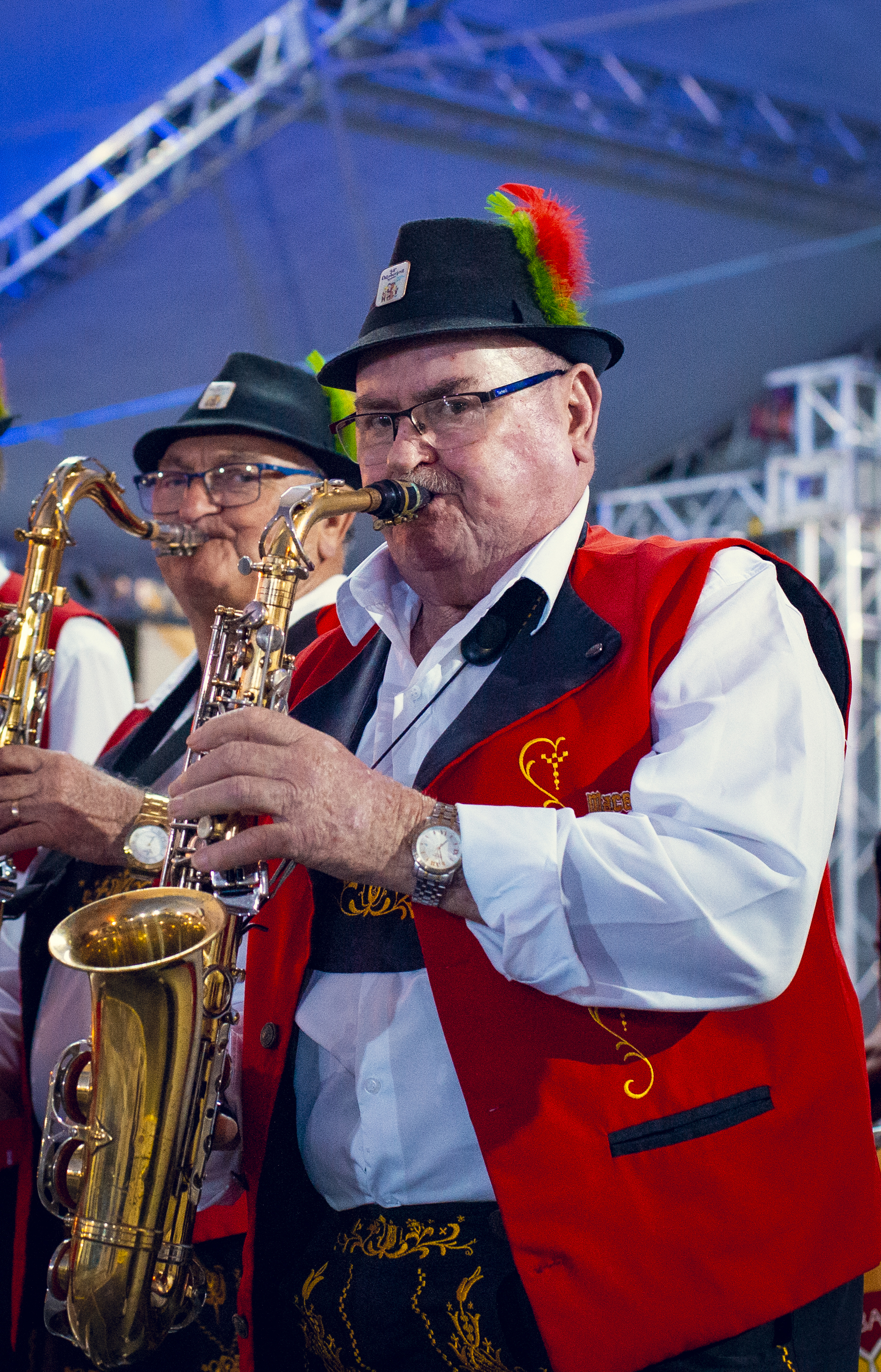 As bandas itinerantes estão de volta à Oktoberfest neste final de semana. Cinco grupos vão caminhar por todo o parque e convidar o público a dançar e cantar clássicos da música germânica. Entre as atrações está a Macega Show, de Igrejinha. A banda cinquentenária está no evento pela primeira vez. “É um imenso prazer participar da Oktoberfest de Santa Cruz do Sul. Esperamos que nos chamem de novo em 2024”, diz Anibal Sander, saxofonista e um dos primeiros integrantes da banda, fundada no início dos anos 1970.