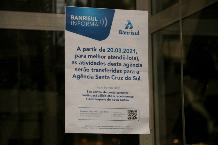 As atividades da agência Túnel Verde do Banrisul, na Rua Marechal Floriano, 1.056, no Centro, foram encerradas na semana passada. Os clientes receberam cartas de aviso e passaram a ser atendidos na agência Santa Cruz do Sul, da Rua Marechal Deodoro, 391.