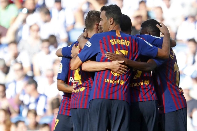 Os três principais favoritos ao título do Campeonato Espanhol entraram em campo neste sábado, 15, pela quarta rodada da competição. Mas só o atual campeão se saiu vitorioso. Fora de casa, o Barcelona bateu a Real Sociedad por 2 a 1, de virada, e se isolou na liderança, com 12 pontos.